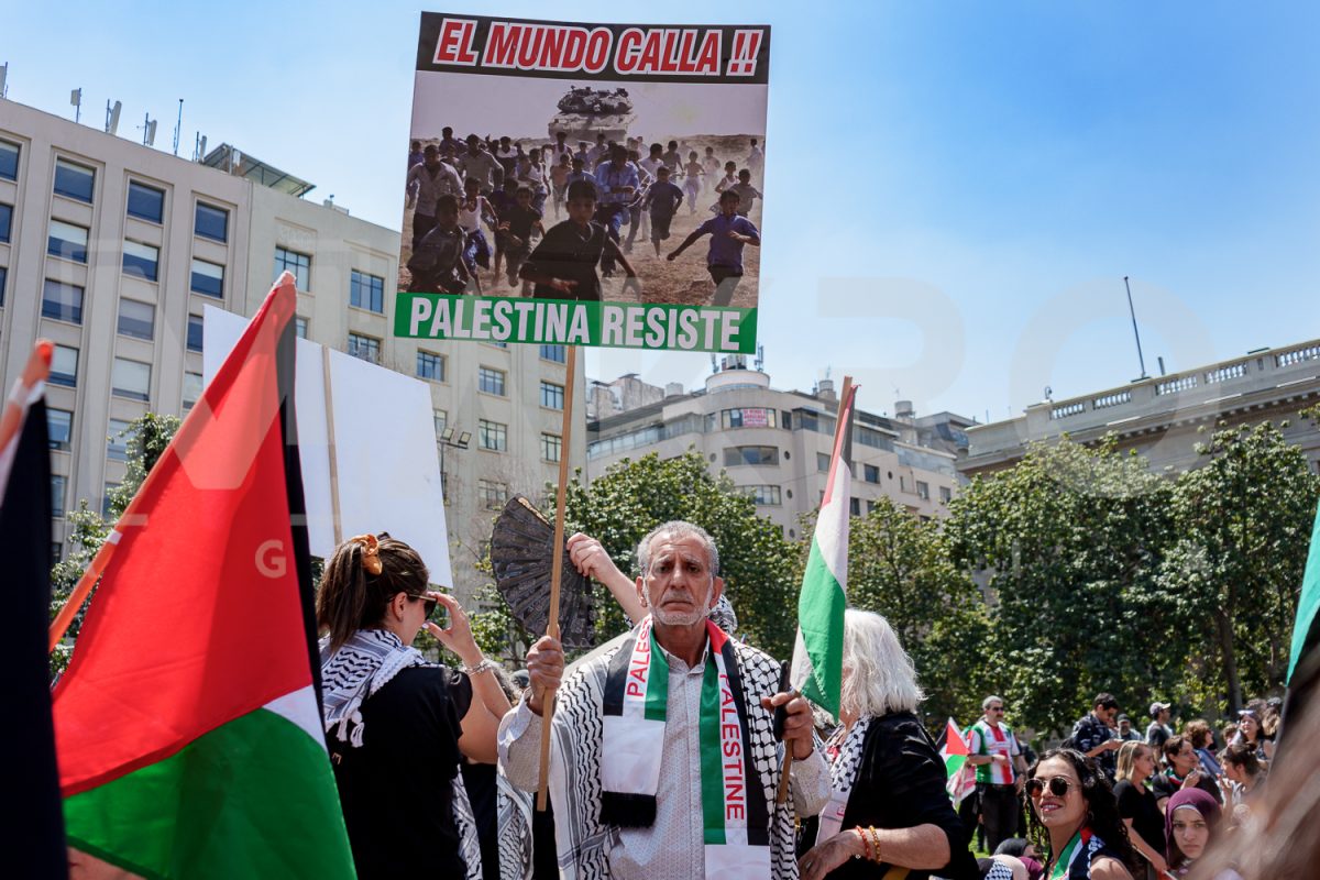 En una convocatoria con cerca de mil personas que coparon hoy la Plaza de La Constitución en el exterior del Palacio de La Moneda, en un encuentro por la paz que fue convocado por la comunidad Palestina en Chile que se desarrolló a partir de las 11:30 de la mañana para pedir a la comunidad internacional que los apoye y pida a Israel terminar con su ataque en la franja de gaza donde cada día mueren civiles inocentes.
